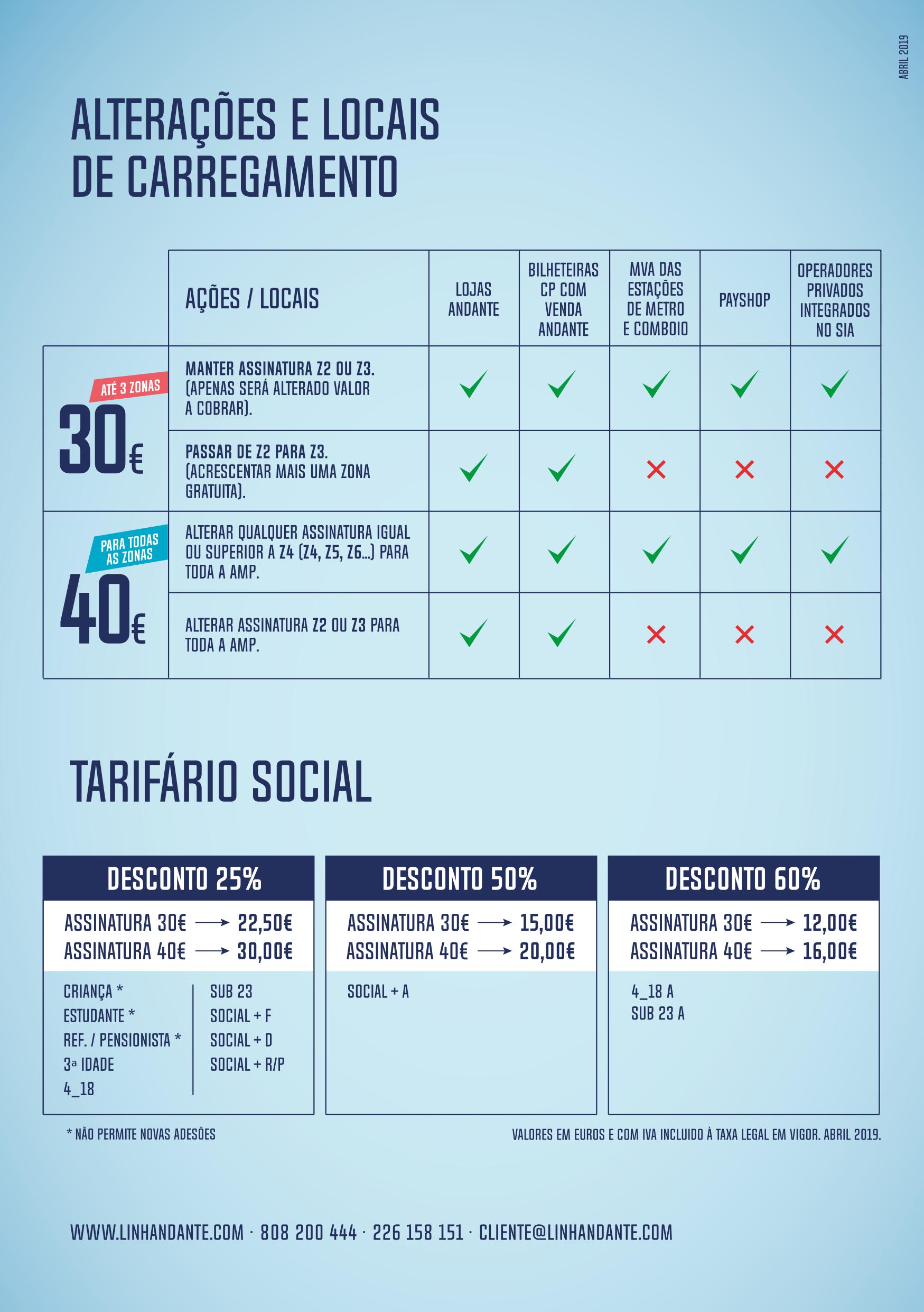 Vão estar disponíveis 2 assinaturas mensais: Andante 3Z e Andante Metropolitano.